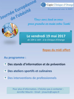 Comme chaque année, Obésité traitement et la clinique d’Orange participent activement à la journée européenne de l’obésité. Une journée où chirurgiens, équipe infirmière, staff, patients de l’obésité seront présents. Pour organiser cela, la clinique d’Orange intervient en collaboration avec le Centre RNPC (Conseils et suivi personnalisé en diététique et nutrition).